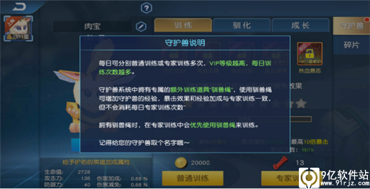 根据上面的介绍,小编也是操作了一番,对守护兽进行了训练项目。
