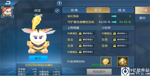 下面是守护兽的训化,这里要关注的是您的备有守护兽驯养石,这是提升守护兽训化等级的必要物品。
