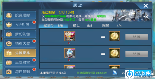 今日小编带大家看一下豪礼是怎么兑换的!当然每一个项目都是有规则滴。