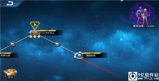 1、打开奥特曼王者传奇游戏点击屏幕右下角的关卡