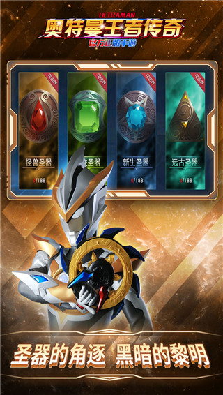 1、海量关卡和副本任由不同的玩家挑战,每一关卡都是全新的场景画面;2、超多强大的奥特曼超级英雄供你收集,自由召唤英雄与怪物展开战斗;