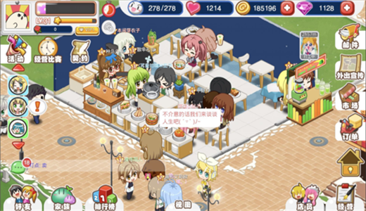 同时餐厅萌物语百度版游戏中的每一个店员都有着星级的区分,不同星级的店员所拥有的属性各不相同,每个店员都有着好感度,厨艺以及体力的数值,店员的厨艺会影响菜的品质,所以厨艺值高的店员适合做厨师,好感度高的店员适合做服务生,游戏前期有着三种岗位,分别是服务生、厨师和招待,随着餐厅等级的不断提升也会相应解锁更多的菜品和餐厅装饰物,客人点菜后一定要以最快速度制作出来,不然客人的耐心值耗光就会离开,客人吃完饭后会根据菜的品质和服务给出评价,每获得一次好评就会增加一点人气值,人气值越高,所来就餐的客人就会越多,感兴趣的小伙伴们快来餐厅萌物语游戏中经营你的餐厅吧!