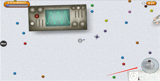 3、通过移动虚拟摇杆来控制纳米粘合球移动