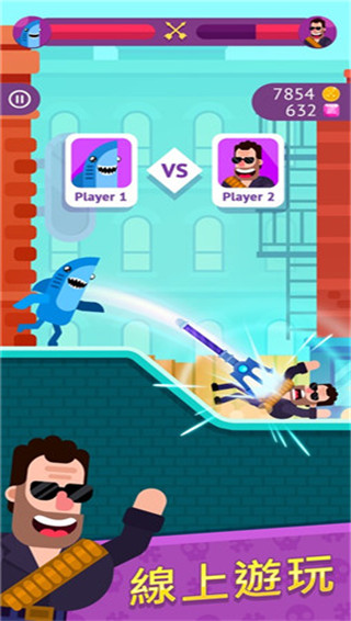 1、在对局中,玩家需要拖动屏幕控制设计角度和力度射杀敌人