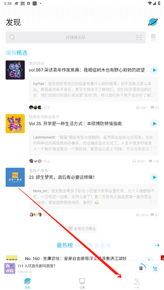 3、软件还会根据用户的收听历史和点赞内容来筛选推送用户喜欢的内容