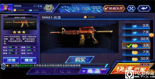 如果你的金币攒到一定数量,东东极力推荐你买炎龙来体验一番,刚刚进入游戏中的时候所赠送的那把枪也是炎龙,M4A1炎龙的整体属性都要比M4A1-突袭要高上许多,价格当然也要贵一点点,不过35600金币也不是很难赚,多做任务很快就可以攒够了!