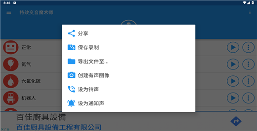 3、软件拥有数十款变声效果,如氦气、机器人、大机器人、松鼠等