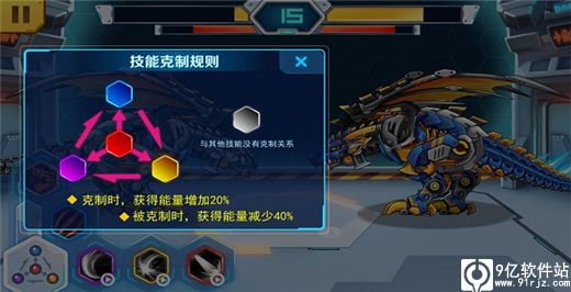 游戏中提供了王者战场,每日副本、兽王争霸以及竞技场等多种模式。不论那种模式,其战斗方法都是一样的,优先能量充满的机甲将释放技能造成伤害,回合制的对决模式,看似非常简单,实则具有超强难度,不同的技能存在一定的克制关系,想要赢取每场胜利的关键所在,除了机甲的强力属性意外,掌握技能克制方才能赢得战斗。