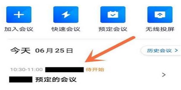 1、打开腾讯会议app后,在主页选择预定的会议信息查看,点击右上角的三个点进入设置页面。