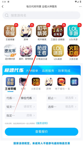 3、在这里可以看到有着多种可以选择的代练,根据自己的需求选择