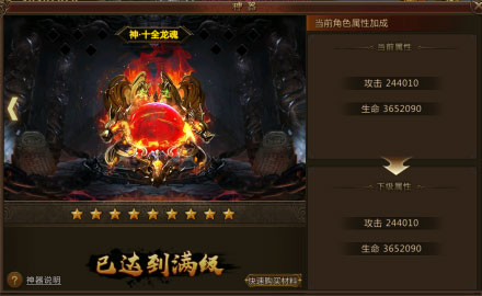 龙魂可以极大增加玩家的攻击力和生命值,通过龙魂碎片升级,材料主要通过轮回任务和生存战场活动获得