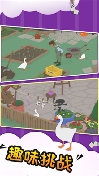 捣蛋鹅官方正版是一款非常好玩的捣蛋沙盒游戏,由pc端游戏移植而来,游戏画面采用独特的3d画风,搭配其轻松搞怪的音乐,给玩家带来不一样的游戏体验。在游戏中玩家将扮演一只调皮的鹅潜入村庄捣蛋,你的目标就是完成各种恶作剧、破坏村民平静的生活。玩家可以打翻食物,追赶村民、偷取物品等,当然你也可以静悄悄的完成恶搞也可以当着村民的面完成破坏。游戏一共分为捣蛋模式和疯狂模式,在捣蛋模式中玩家需要完成指定任务才能进入下一关,疯狂模式玩法和捣蛋模式基本一致,不过玩家需要在规定时间完成任务才能进入下一关。感兴趣的小伙伴赶快下载捣蛋鹅官方正版体验吧。