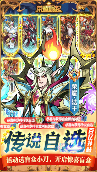 1、【创角福利】创角即送荣耀刷充器,余额无限存入,5星圣骑士开局,再送100元提款余额、满级VIP30、钻石*88888、金币*588888、经验水晶*5888882、【等级红包】升级累计可领10000元现金卡(可激活累充活动)