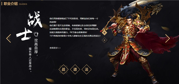 近战物理攻击型的职业,不仅高伤害,同时还有高生命。技能方面简单而暴力,PK节奏也很爽很快,1V1单挑的时候很少会有人能够完全正面的击败这些战士。