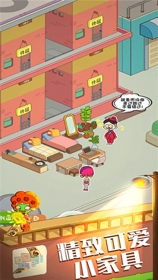 1、在这里,你将化身为一位包租婆,招揽租客经营着你的出租屋2、游戏采用经典的漫画风格,画面刻画非常精致,人物道具塑造的十分可爱