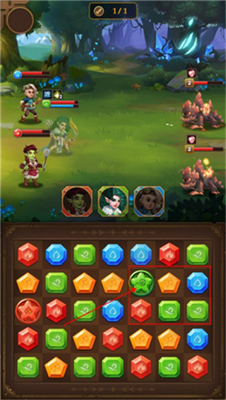1、游戏开始,选择相同的三个方块即可消除,消除后英雄就会开展攻击。记住,只有消除对应颜色的方块英雄才会攻击,否则是无效的。