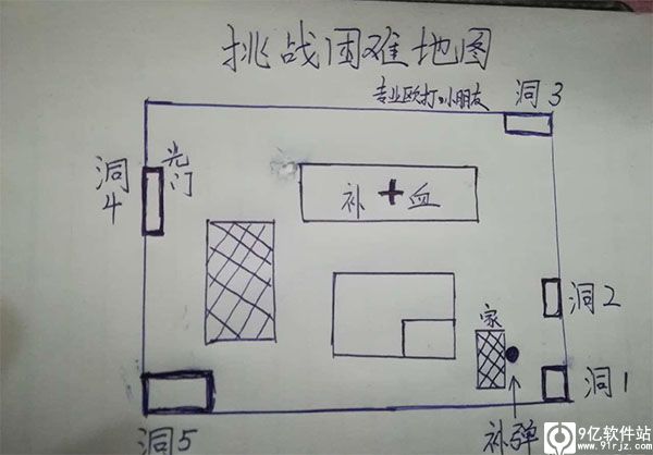 不会打困难的先了解困难的平面图,入口3,4,5都会出飞机怪,飞机怪是不懂打困难的噩梦,所以,我们的主要目标是守住1和2两个口,让火力强的守3,4,5。(平面图献上,画的不好别介意)