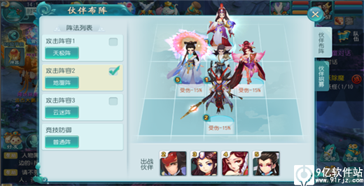 2、伙伴布阵:伙伴可布置成不同的站位生成阵法效果,提升战斗力。不同的阵法互相克制