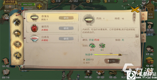 衣物解决后还要考虑到的便是药品,不管是什么时节都是需要用到药物了,只不过使用的情况可能会有所不同,例如在冬季就非常容易感冒,这时候要用到的就是香蒲汤,它能够治疗头晕发热,适用于治疗较轻的病情。