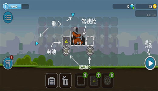 5、需要克服各种挑战,如用完燃料、陡峭的斜坡、车辆失去轮子等