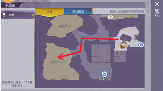 4、大家跟着地图走就行了,距离并不远,在路上遇到一些普通甲虫可以选择打它们来获得甲虫囊(这个是后面兑换图纸和制作其它物品所需要的材料)。如果懒得打它们也可以选择无视,直接采地上的蘑菇就好。