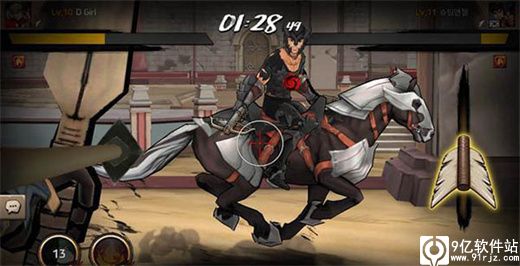 游戏的主要玩法就是骑在移动的马上,射中对方,将对方血量打完就算胜利。说起来简单,但实际玩时,这种瞄准时令人紧张窒息的感觉非常突出!
