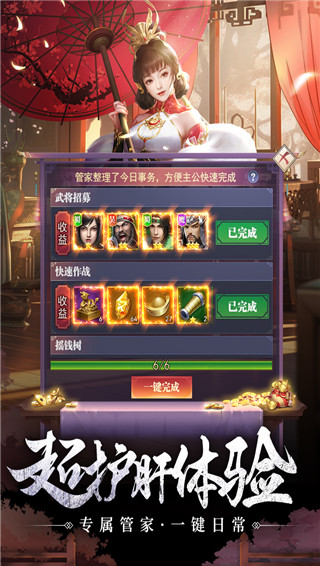 1、采用超级精美的画面,为玩家呈现最真实、最爽快的游戏体验2、丰富的作战场景和炫酷的打击场面增强了玩家的沉浸感,让他们仿佛置身于三国历史之中