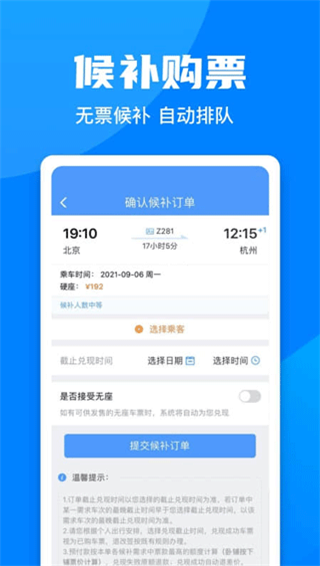 3、在使用12306铁路订票app进行购票等操作时需要进行实名认证,确保信息的真实性和安全性。