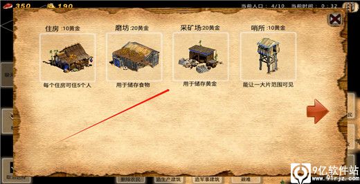 1、进入帝国时代手机版游戏后,点击右边屏幕的农民,在点击你需要建造的建筑
