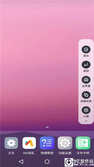 4、点击右侧隐藏的控制菜单,能够看到返回、退出、小窗、关机等基本操作按钮,这是控制进出虚拟机系统最核心的区域。