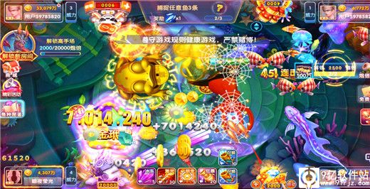 5、击杀鱼种是获取金币的主要途径,玩家通过捕捉各类鱼种来获取大量金币,随着炮台的升级