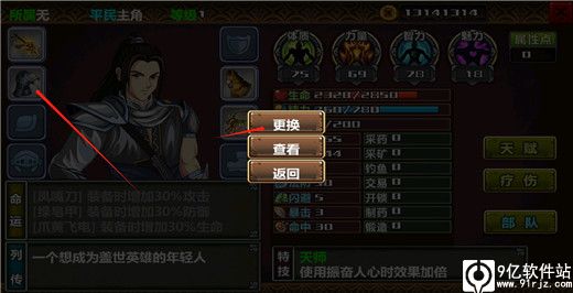 3、当我们抽取到装备时,点击左上角人物头像,再点击武将