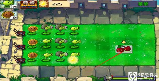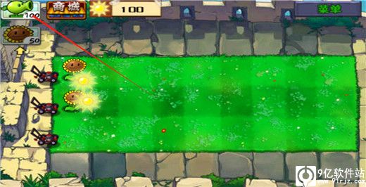 2、当太阳值达到一百时,我们就可以中豌豆射手了