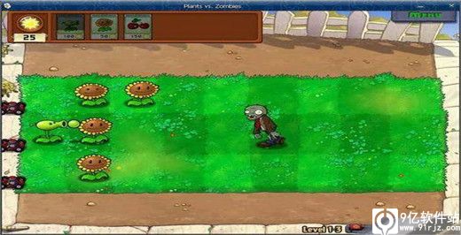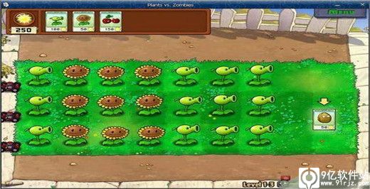 这一关僵尸出的快,但沉住气,先造4个向日葵再出豌豆,后面一边补向日葵,一边放豌豆即可。