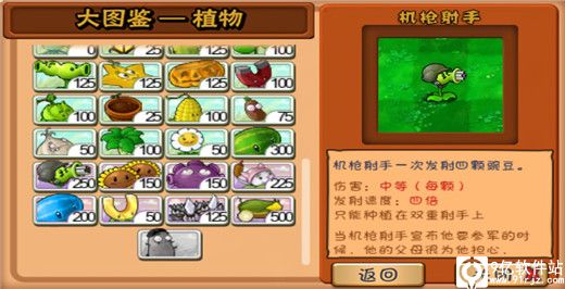 只可以种植在双重豌豆射手上,一个双重豌豆射手可以升级为机枪射手,发射速度是普通豌豆射手的四倍,一次可以发射四颗豌豆,商店售价5000金币。
