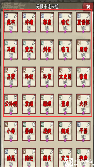 关于这个无限10连还要说明一点的是,有大约11个武将是刷不出来的,像是吕布、太史慈、关、曹、赵、华佗、貂蝉、贾诩、周瑜、诸葛亮。吕布可以从宝箱里概率获得,最新版本里还增添了保底活动,通过酒肆抽卡累计达到一定的次数必然获得。然后就是宝箱和每日充值也都可以出货,连续签到一个月送的自选包也可以出,但游戏自选里没有曹操和吕布,这个还请注意。