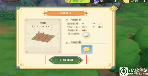 3、当我们升级完成后,就能看到新外貌的菜园,而且也解锁了新的事物种植