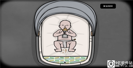 回到婴儿车,依次给劳拉【奶瓶】,【布】,【别针】,喝完奶,得到尿布。