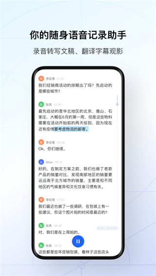 讯飞听见app是一款非常实用的录音转换文字工具软件,它可以将语音转换为文字,帮助用户快速准确地将录音内容转化为文字文档。该软件具有高度准确的语音识别技术,无论是会议记录、讲座笔记还是语音备忘录,只需将录音文件导入软件中,它就能迅速将语音内容转换为文字,并且准确率非常高,这对于需要整理大量录音资料的用户来说非常方便。