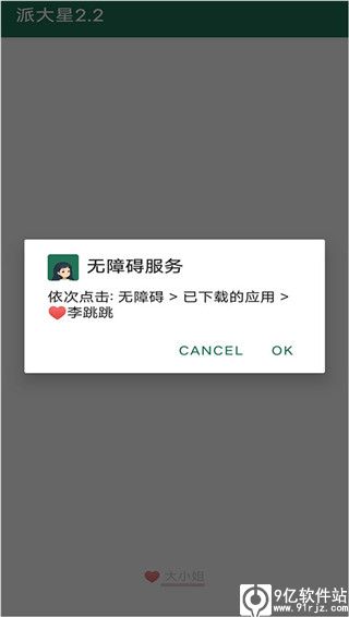 4、在“快捷方式服务”内选择“李跳跳”点击开启-确定,即可设置跳广告