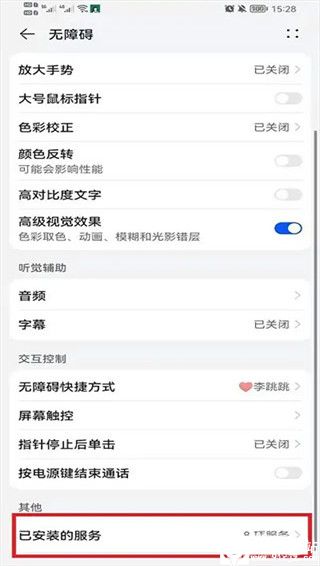 2、进入手机设置系统的无障碍功能中,找到“已安装的应用”点击进去