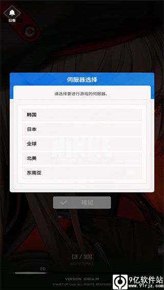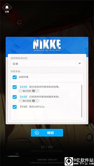 打开游戏后,我们需要选择国家地区(服务器选择在后方),勾选全部同意选项后,之后点击下方确认按钮