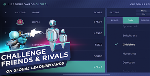 4、提供了15种小游戏类型任务,专注于提升速度、命中率、反应时间、反应射击、快速反应、头部射击等