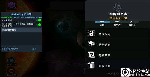 ps:小编给大家带来的是从细胞到奇点破解版内置作弊菜单资源,游戏内置功能菜单,可开启免广告获得奖励,无条件使用货币功能。