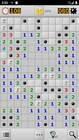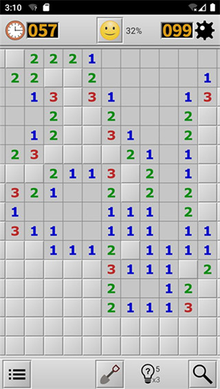 扫雷手机版是一款经典的益智烧脑手游,游戏最早为微软在电脑操作系统中引入,主要目的是让用户训练鼠标,之后逐渐发展成游戏。扫雷手机版界面非常简单,由多个小方格组成,每个方格内可能是数字,可能是地雷,也可能什么都没有,玩家需要点开所有方格,查找地雷。如果点开的是数字,那就代表着周围有几个对应数字的地雷,如果点开的是白色方块那就代表此处没有地雷,那如果点开的是地雷,那就代表着游戏失败。