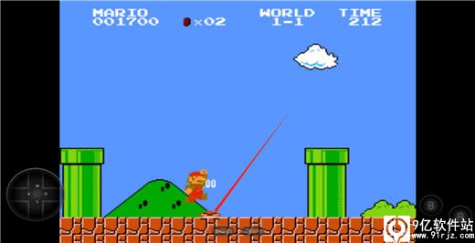 1、通过点击左右两侧的虚拟按键控制马里奥跳跃前进
