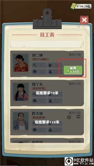 1、游戏画面采用中国卡通漫画风格,画面精致细腻2、通过雇佣村民帮助你一起挖掘,加快挖掘速度