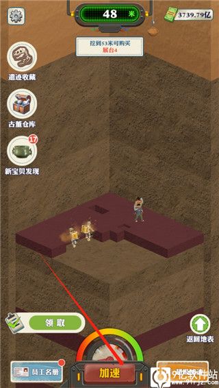 1、王铲铲的致富之路中,玩家需要不断向下挖掘,发掘宝藏并且售卖掉2、通过不断的挖掘你会遇见各种物品,如巨石佛头、化石等