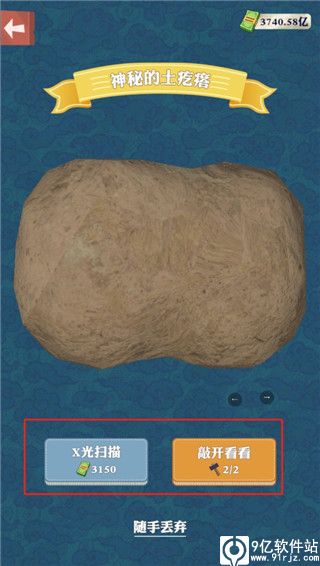 1、在挖掘的过程中,会遇见各种未知的物品,玩家可以通过x光扫描、敲开查看是什么物品