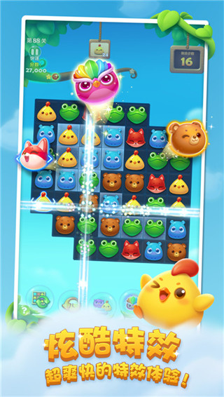 1、采用Q萌可爱的画面画风,结合全新的物理引擎,提供清新亮丽的甜蜜画风和炫目华丽的特效2、动感欢乐的音效,营造全新的消除乐趣